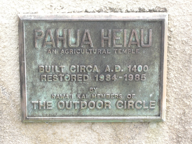 ハワイカイの閑静な住宅地の奥に忽然と現れるこのヘイアウは、かつて農耕の祭事をとりおこなう場所であった。整然と並べられた美しい石垣と、ヘイアウを覆うように生い茂る緑のコントラストが美しい。このヘイアウはハワイカイの高台にあり、現在も高級住宅地として栄えるハワイカイの風水的立地の良さを実感できる場所でもあり、それにより昔からこの地がパワーを持っていたことをうかがい知る事が出来る場所でもある。